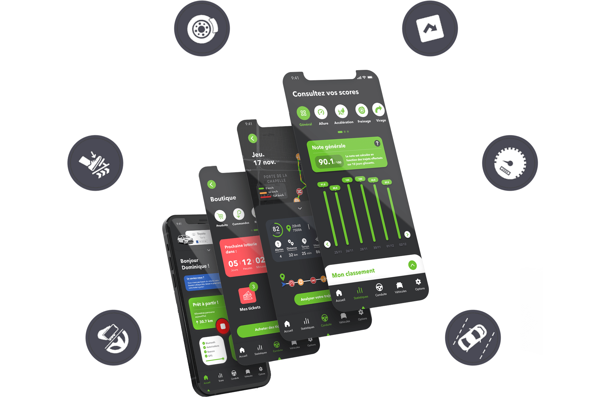 L’application Android/iOS analyse les comportements de conduite sans aucune intervention des conducteurs.
